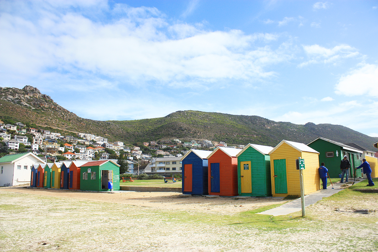 Fish Hoek的沙灘特別之處就是海旁一間間不同顏色的小木屋更衣室,跟墨爾本Brighton Beach的幾乎是完全一樣,甚至國際知名的旅遊書也以這裡作為封面相片,不過到達之後,卻叫人大失所望,原來這裡只有小屋數間,加上沒有國旗色作為配襯,只是3分鐘就已經可以離開。