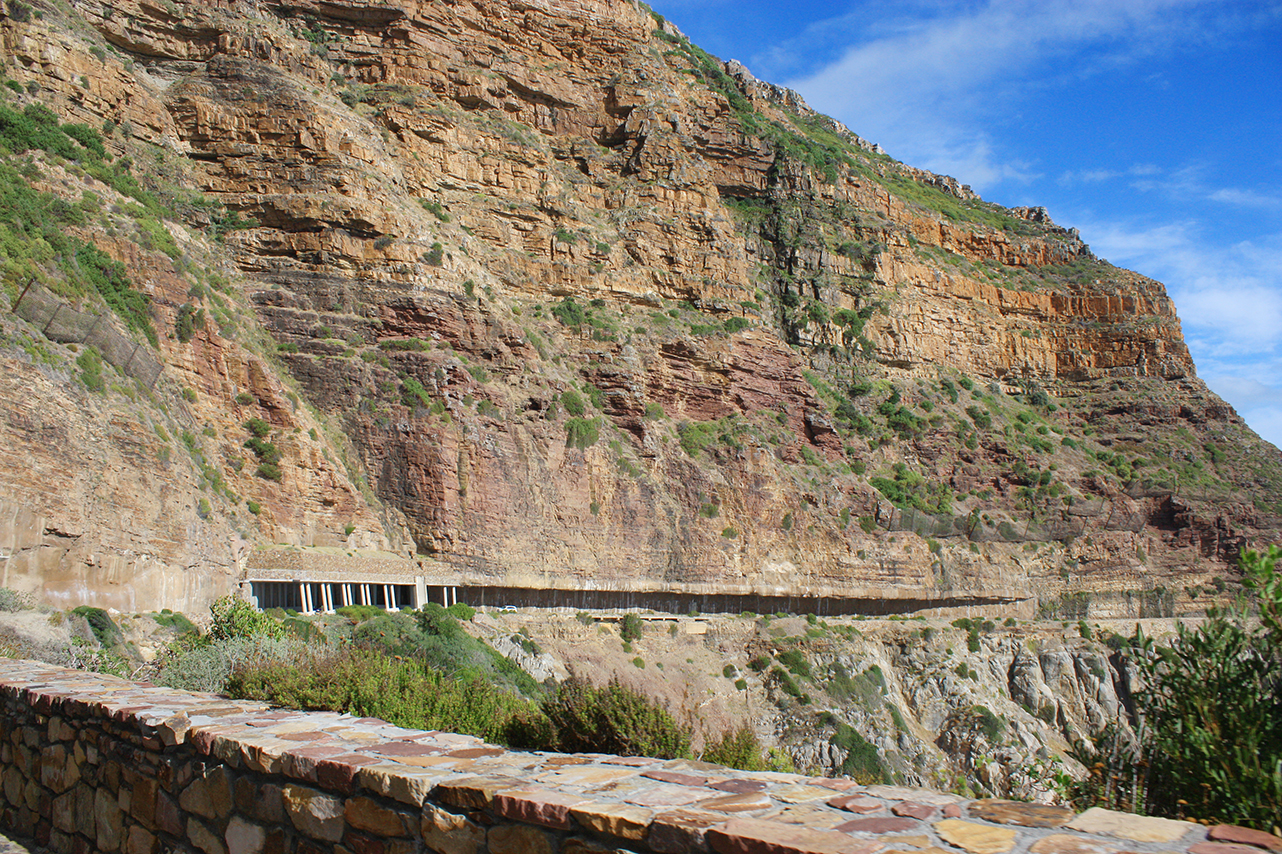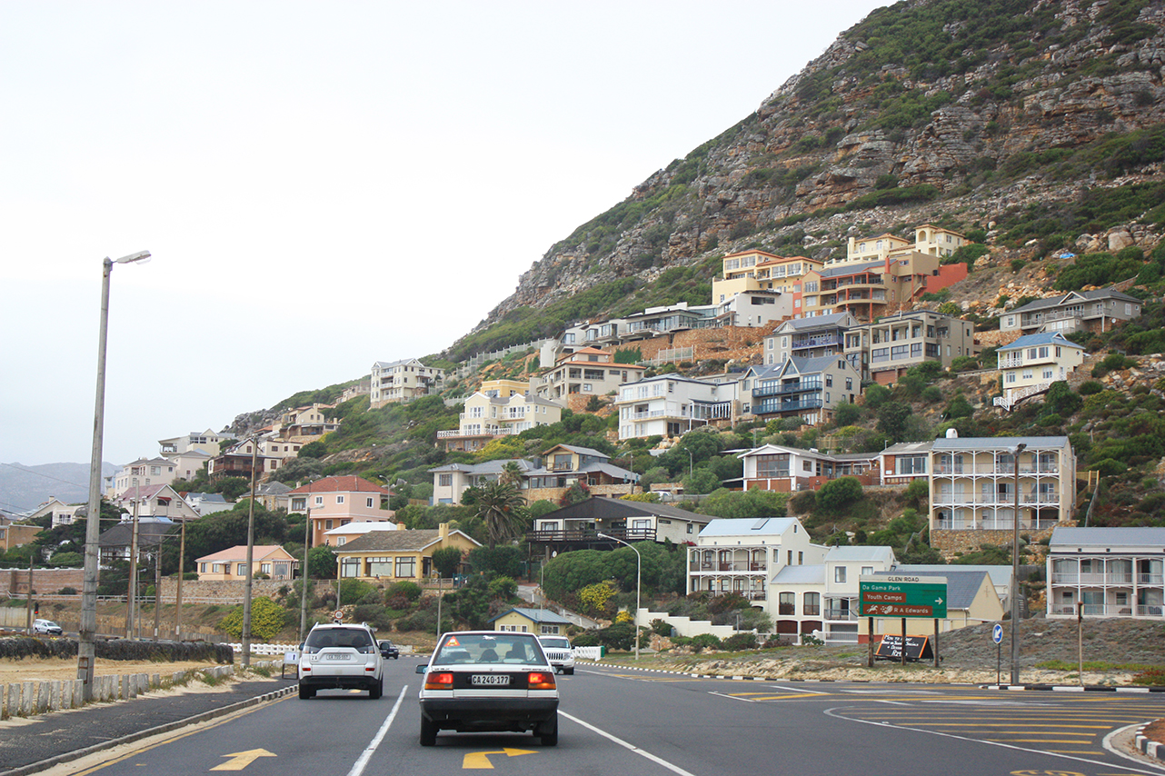 重回N3,以140km/h的高速一路南下,很快就走到盡頭,右轉M64公路,就會一直沿著懸崖上山,直到山頂再南下Simon Town,沿途的風光和路段,有如鬼斧神工,加上整個Constania和開普敦的景色都盡入眼簾,使人也忍不著在觀景台停車,好好看看這裡的風景。下山後,我們便回到海邊,沿著寬闊的M4繼續南下,駛往Simon Town,這段的路況,基本上就與澳洲的Great Ocean Road分別不大,路旁有不少依山而建的住宅,而小鎮上就有不少Fish N Chips和酒吧餐廳等。