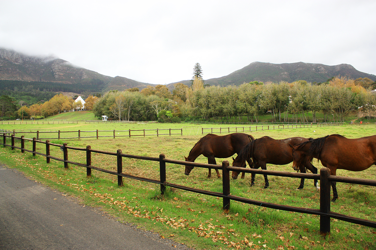 錯有錯著,Buitenverwachting酒廠除了例牌的葡萄園外,最特色的還是背後方的Table Mountain作為背景,前景就有綠色大草原和牧場,由於之後我們還有機會到最著名的酒廠慢慢品嚐,我們還是停下車來跟馬接觸一番,拍拍照便開車離開。