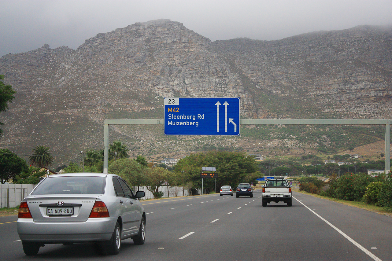 正式行程的第一天,我們首先選擇到市區南面的Cape Peninsular,原因有二,首先這區風景可說是最秀麗,而動物品種亦極有多樣性,加上治安可是全非洲大陸最佳,希望令整個行程更為輕鬆。離開旅館,在前往N3的路上,我們就已經遇上塞車,大約廿分鐘後,我們才駛上高速公路,沿住路況極佳的N3南下。