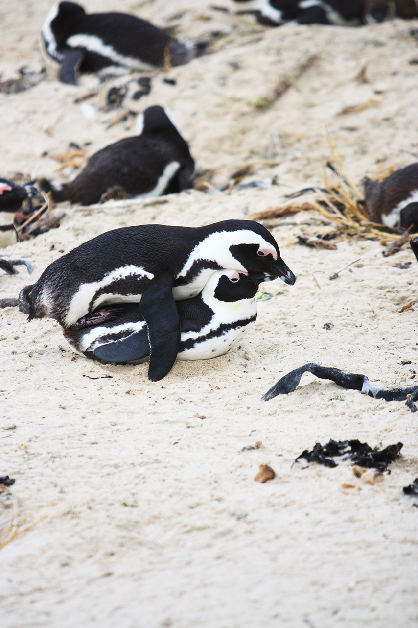 Boulders Beach主要分為兩大部份,包括收費區和非收費可供游泳的沙灘,在收費區內,可沿著步道在近距離觀看企鵝的巢穴,亦可以走到沙灘現場直擊牠們交配。