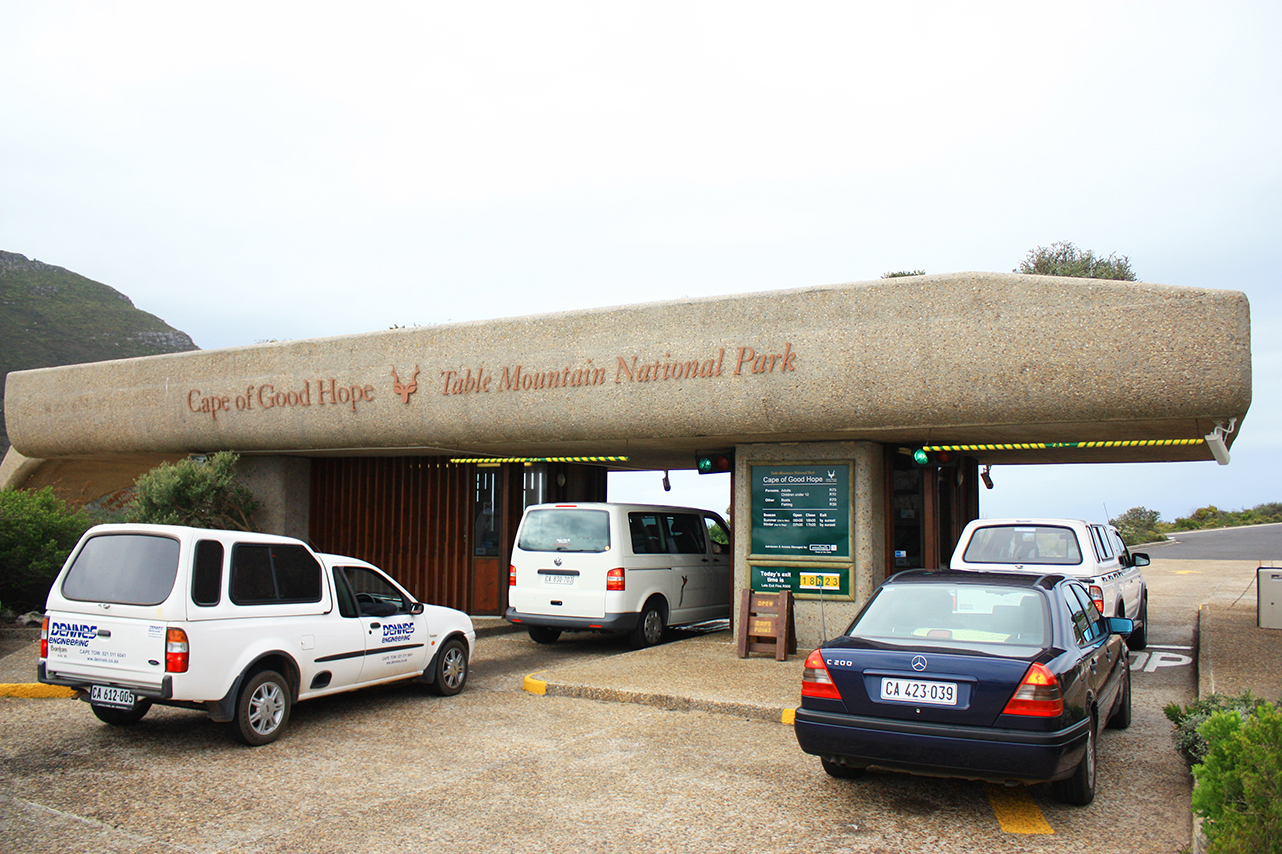 離開Simon Town後,公路便漸漸遠離了水平線,沿著半山上走,進入無人地帶,大約廿分鐘車程之後,便到達了Table Mountain National Park,也即是Cape Point國家公園的入口。繳附了R150的入場費後,我們便沿著山路繼續南下,沿途均是有點苔原和草原地型,並夾雜住很多碎石。