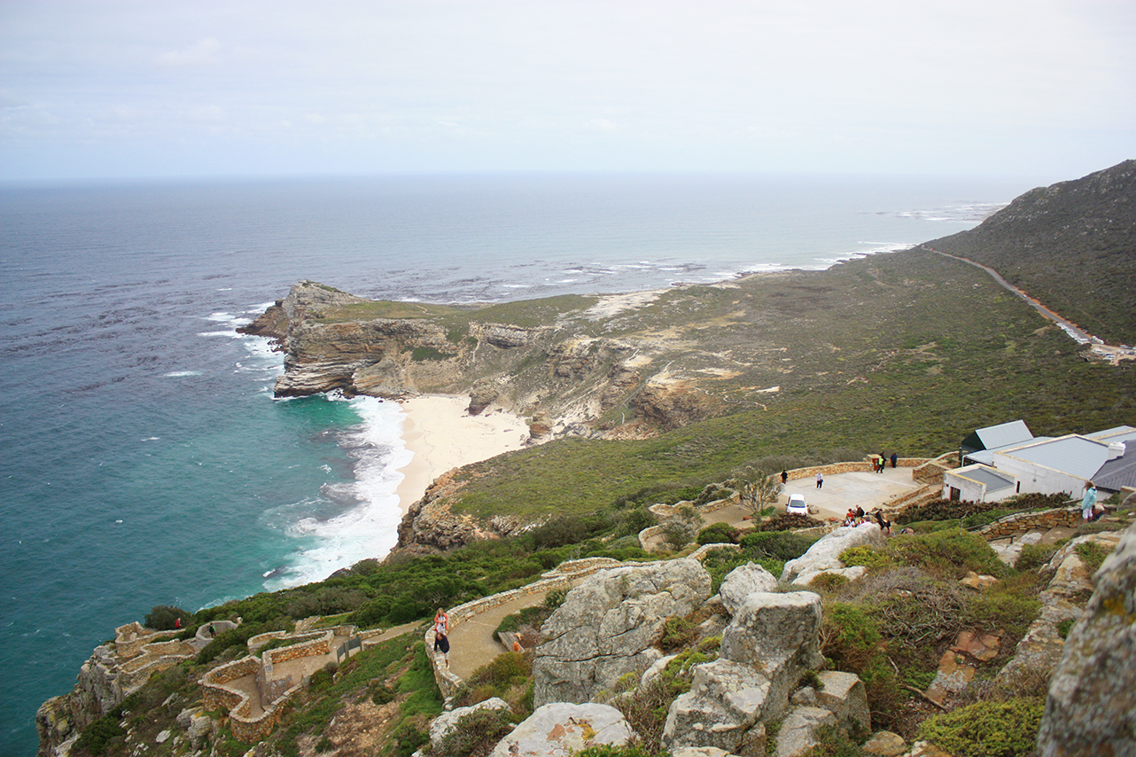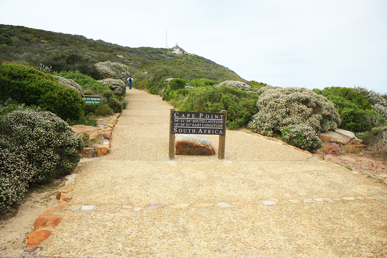 大約十五分鐘的車程後,我們已經駛到了半山上的停車場,泊好車後便可以登上山頂前往Cape Point。其實,Cape Point並不是非洲大陸的最南端和西南端,只不過是整個Cape Peninsular的最南端懸崖,當年歐洲就是通過這裡向亞洲進發,在山頂上還築有兩個燈塔。