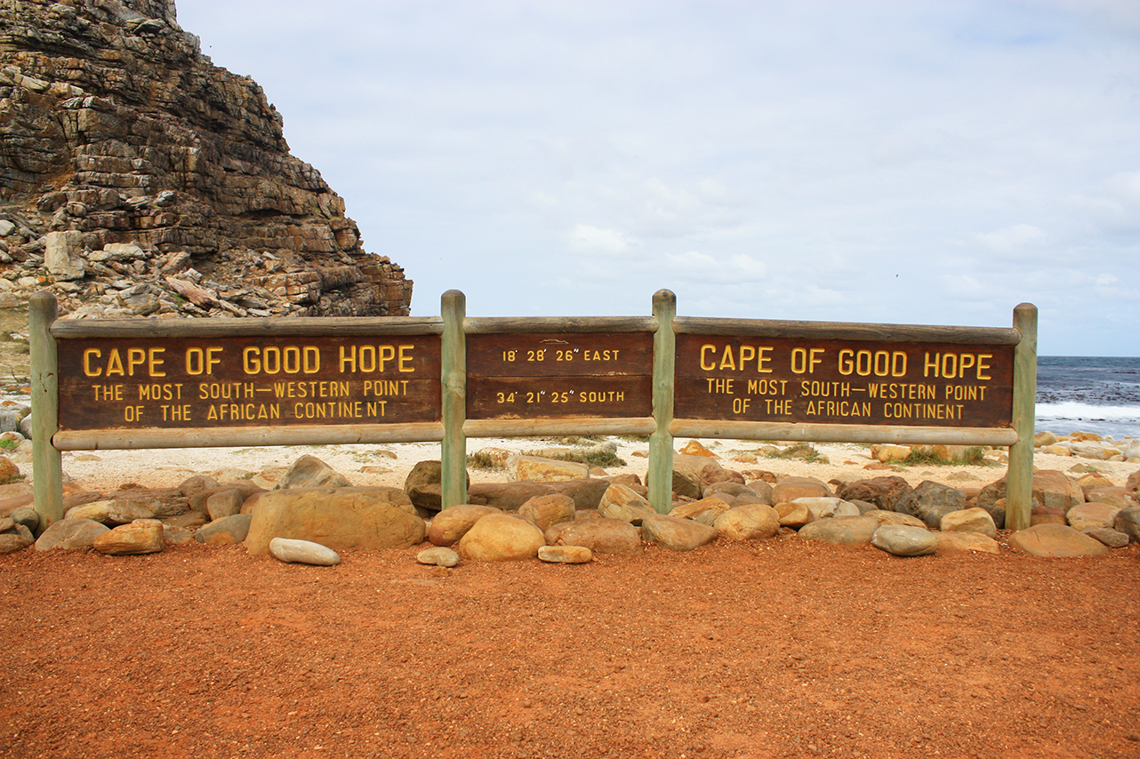真正非洲大陸的最南端,其實是位於好望角,也即是大家熟悉的電波少年起步的地點,位於海旁,旁邊還有很多壯觀的懸崖,由於要從山頂下山的關係,從Cape Point前往好望角,也是花上15分鐘的車程。