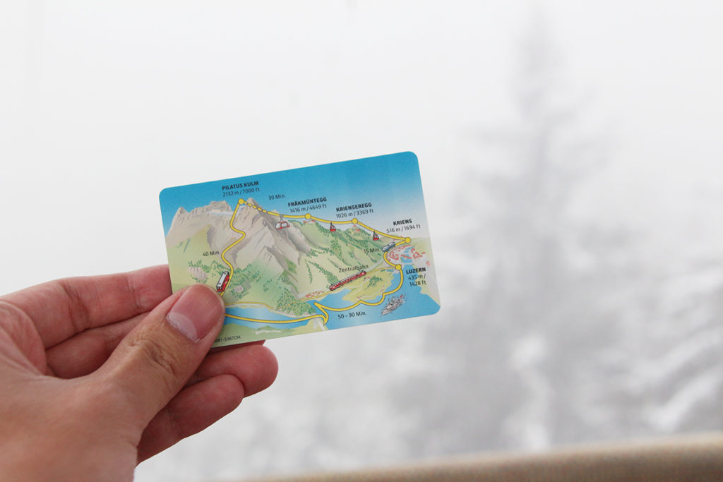 皮拉圖斯山距離琉森市中心只有數公里車程,而就登山方法而言也是最多選擇,如乘搭吊車的話,可直接到Kriens PB吊車站乘搭,到了1,100米的山腰再轉乘大型登山吊車,而另一方法就是駕車或坐船到Alpnachstad PB,乘坐全球最斜的齒輪鐵路登山,沿途都是超級懸崖,斜度超過48%,絕對是個獨特的玩意。可惜,由於初雪早了降臨的關係,鐵路比原定早了一個星期封閉,我們就只好前往較近市中心的吊車站乘吊車登山。