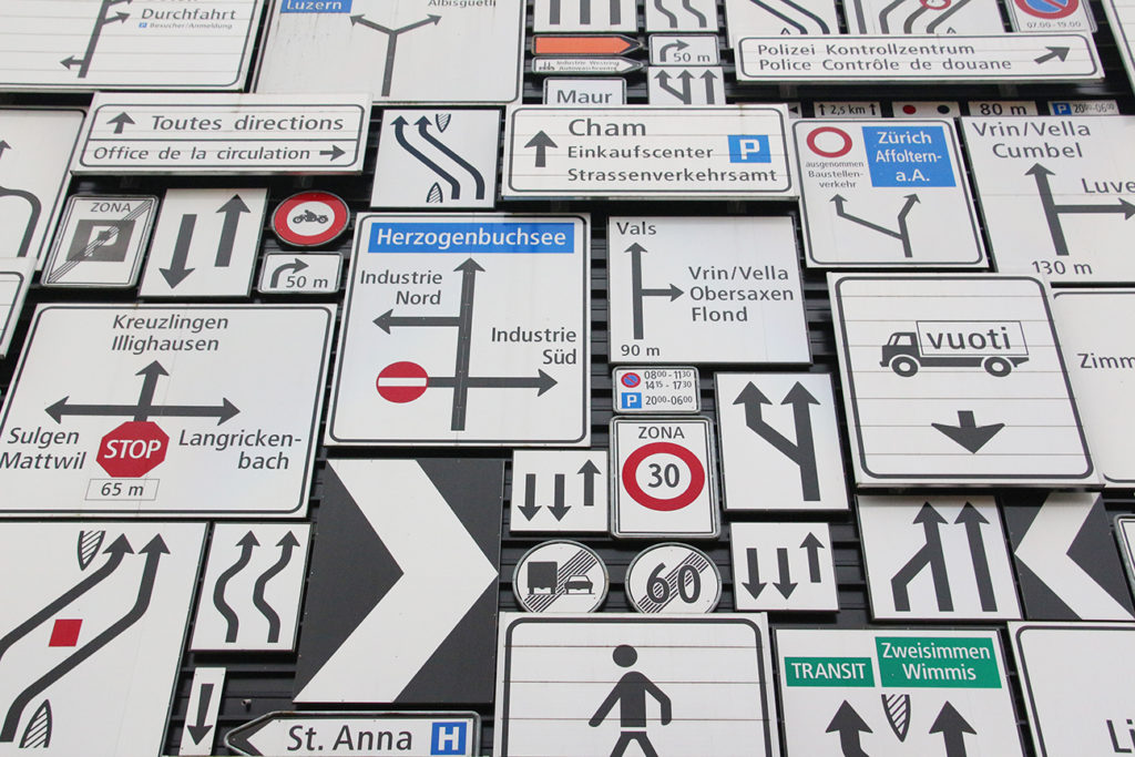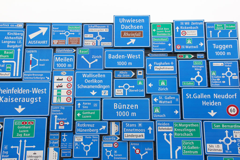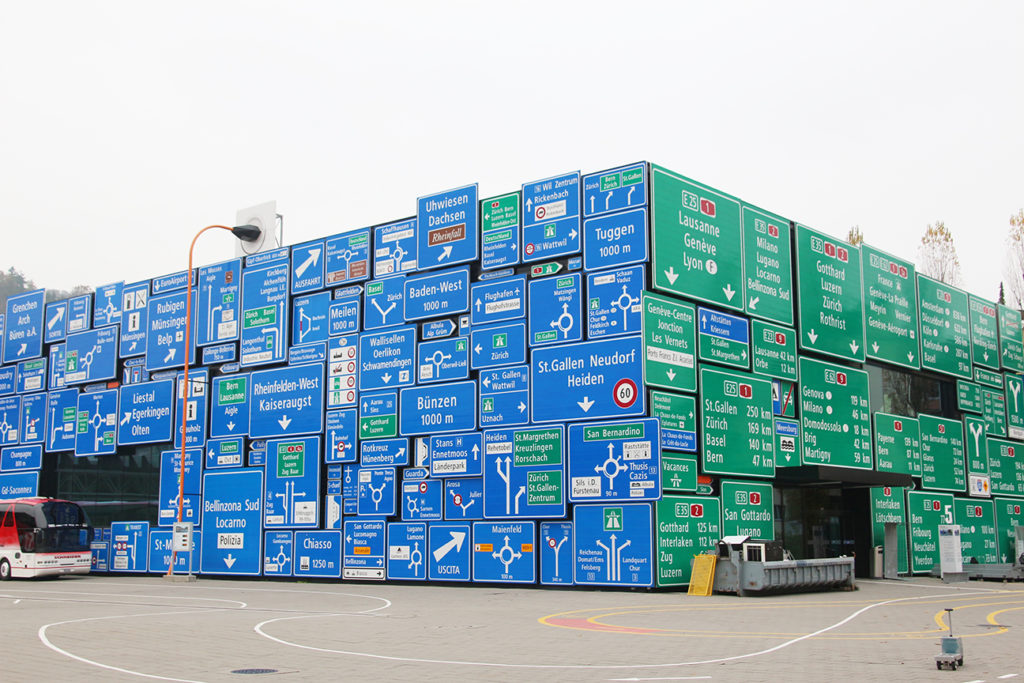 鐵路館外,交通博物館最觸目的絕對是道路交通館,館外三面的牆身全部是由 1:1 原大的路牌砌成,一面是高速公路的路牌、一面是普通公路的路牌,而最後一面則是市中心使用的白色路牌。作為駕駛者,路牌基本上天天都會遇到大量路牌,不過平時掛再龍門架上,實在不會感受到這些路牌是如此巨形,也絕對是取景拍照的好地方。