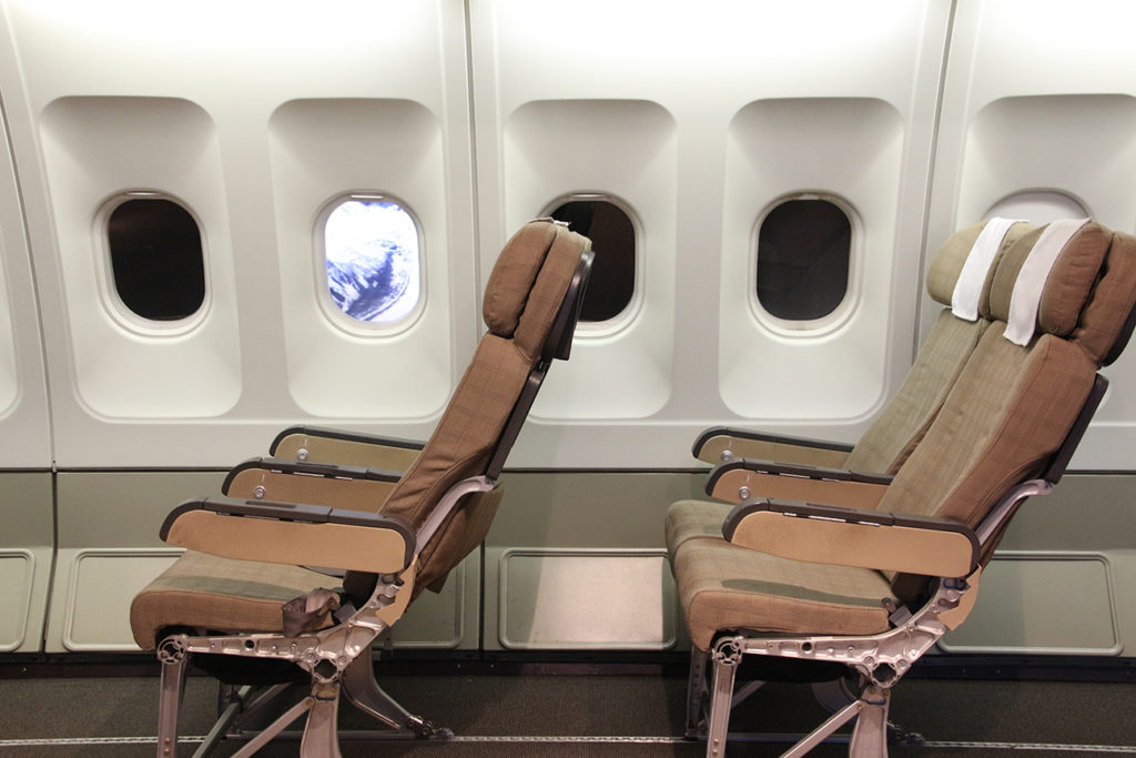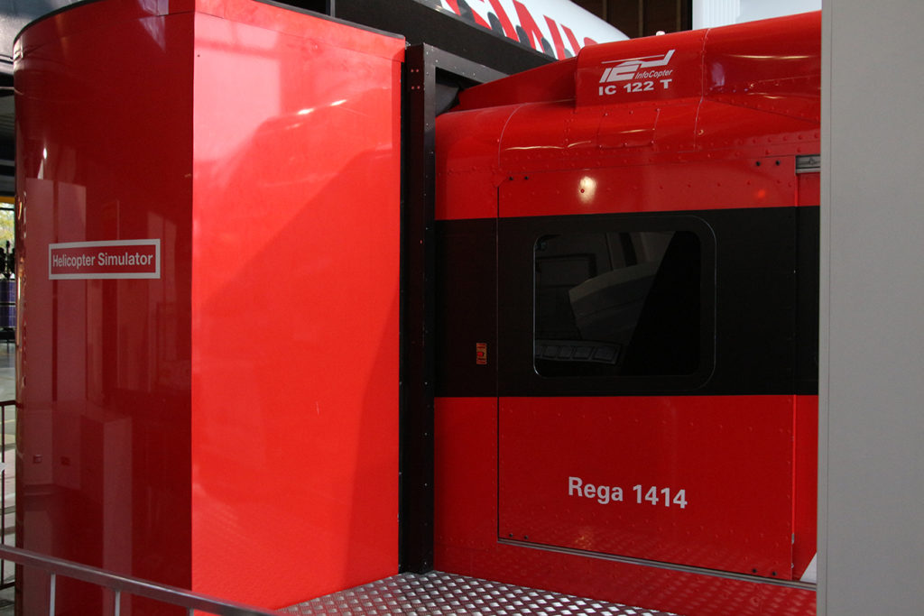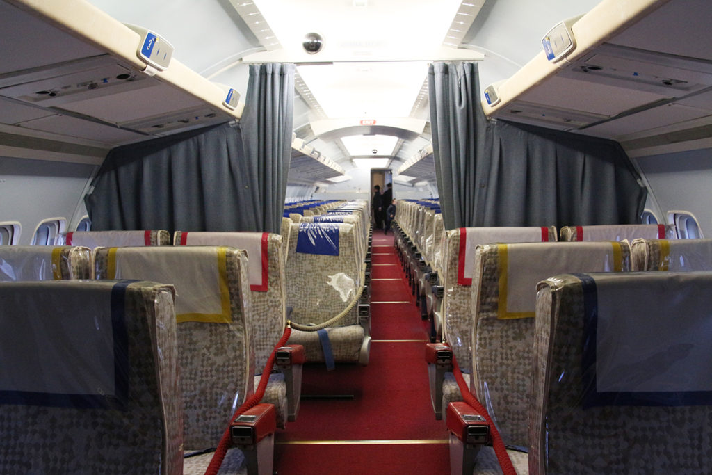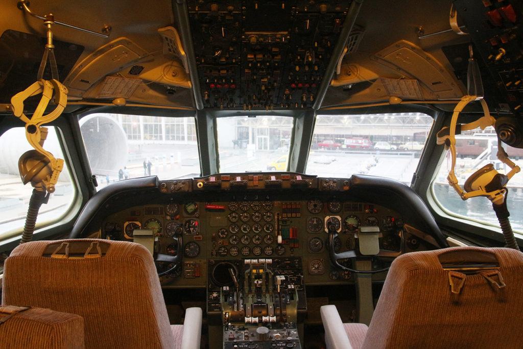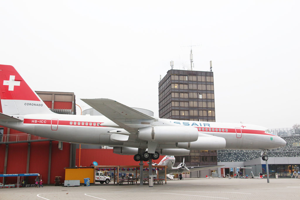經過可怕的「飛行」,我們決定放棄直升機體驗,直接走到 2 樓瑞士航空的模擬機艙感受平靜一下,而這裏亦直通館外擺放的原瑞士航空 Convair CV-990 Coronado 客機,這款在 60 年代風摩一時的客機,當年主要執行瑞士航空的長途航綫,雖然當年的商務客位座位一點都不奢華,但就在機艙前端加入了小型的 lounge 供客人休息,在那個飛行已是奢華的年代,已經是一大的突破。