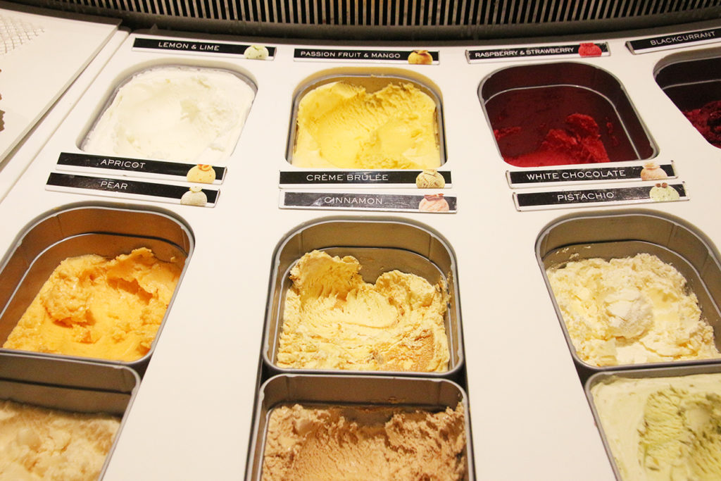 雖然室外氣溫只有 2 度,但來到蘇黎世,還是要到這裏著名的 Mövenpick 雪糕體驗店品嘗最新鮮的雪糕,這裏的果味雪糕比起香港要多出數款口味,如黑加倫子、杏脯味等,除了單球雪糕外,加上窩夫(CHF 7.9),甚至 Milkshake 或咖啡等,大部份都在 CHF 10 以下,在瑞士的物價水平,實在比起 Starbucks 更便宜,為了方便活動,我們就選了最基本的雪糕桶,特別推介梨味和青檸味,果味相當濃,更有少量果肉,相當醒胃。