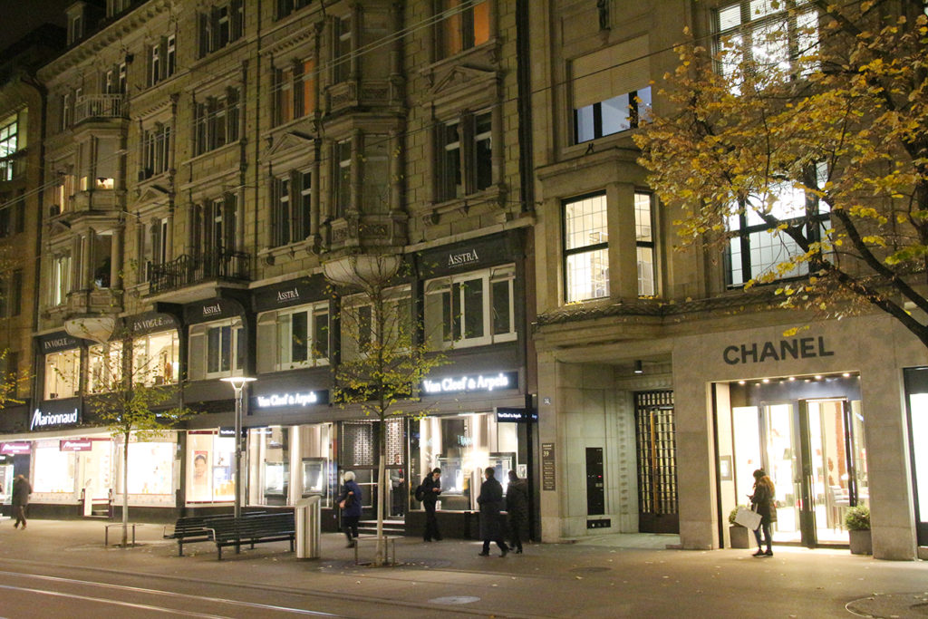 趁著部份商店還未關門,吃過雪糕後就步行到河對岸的蘇黎世市中心著名商店街 Bahnhofstrasse 逛了一會,很多瑞士著名品牌如 Bally、Confiserie Sprüngli、Teuscher 等都在街上開有分店,不過都是消費不起的價錢,而其他歐洲時裝品牌都比起慕尼黑等地昂貴,叫人失望而回。