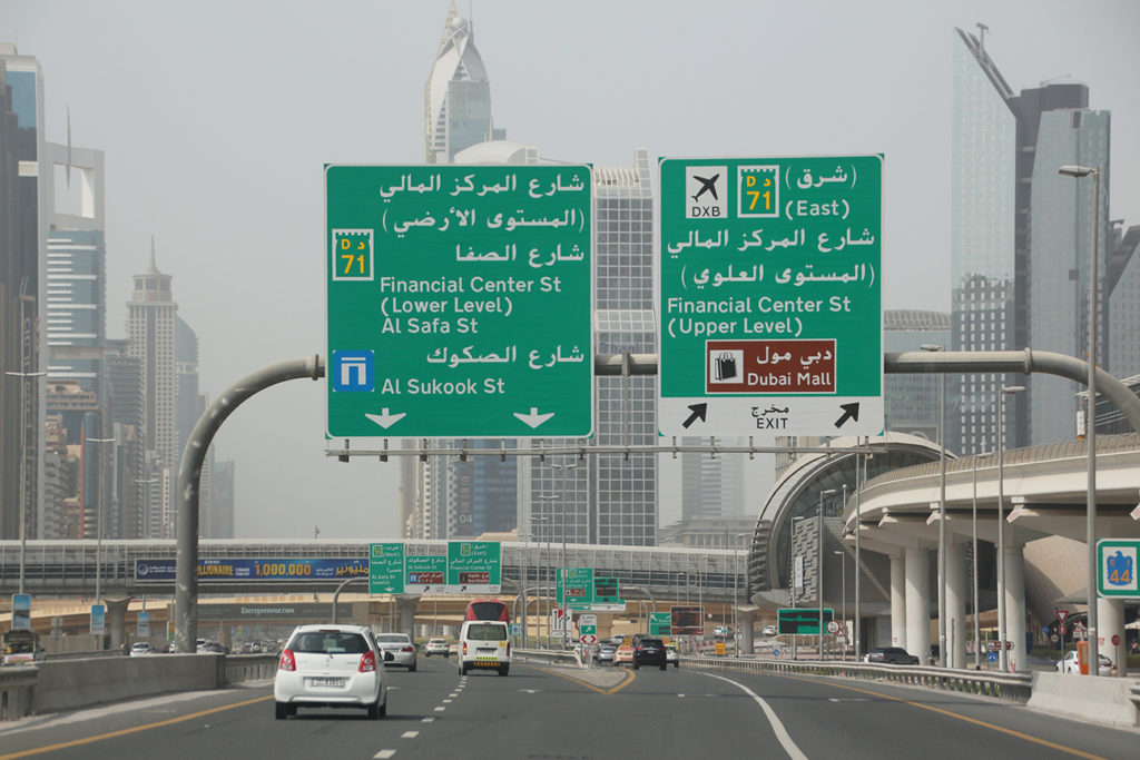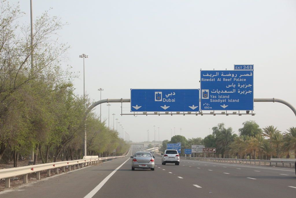 阿布札比到杜拜全程約為 140 公里,由 E11 高速公路貫穿兩個城市的市中心,全程四綫行程,限速 120km/h,不過路牌也有標示最高容許車速為 140km/h,換句話說,只需要一小時車程就可以直達杜拜舊城區,前往棕櫚島、哈里發塔、帆船皇宮酒店等地更只需 45 分鐘。
