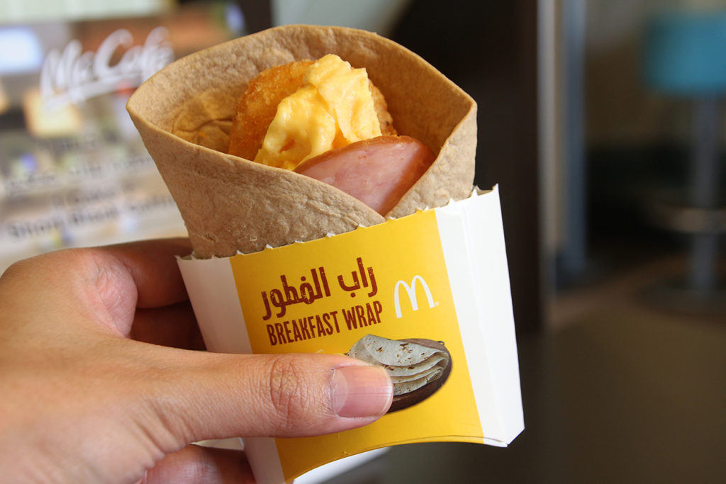 對!麥當奴!中東地區的麥當奴相比全球各地的食物都要特別,包括羊肉卷等都是中東限定,而自從上次在多哈吃過早餐卷後,我們就一直念念不忘,來到杜拜又怎可錯過!