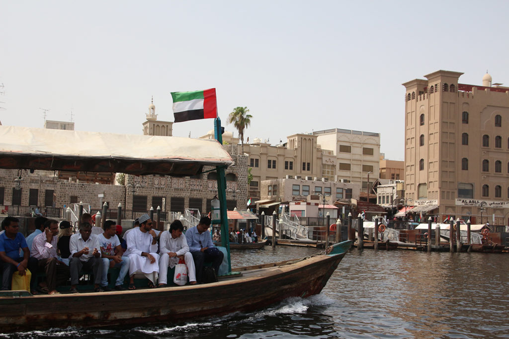 要橫跨杜拜河兩岸,當地人主要以 Abra(عبرة )這種小木船作為交通公具,只要走到碼頭就可以登船,人滿即開,收費 AED 1(HKD$2.2),更可以觀賞舊城兩岸的傳統風塔大泥屋、清真寺等建築。這種傳統的渡河方式,也頗為粗壙,船長早在碼頭角位放了旋轉的車輪,到達碼頭時只是輕輕減速,船身碰上車輪後即可輕易轉入碼頭,說得白點就是撞進碼頭,船未停定當地人(杜拜的外勞為主,酋長們當然坐名車)就跳上岸了!