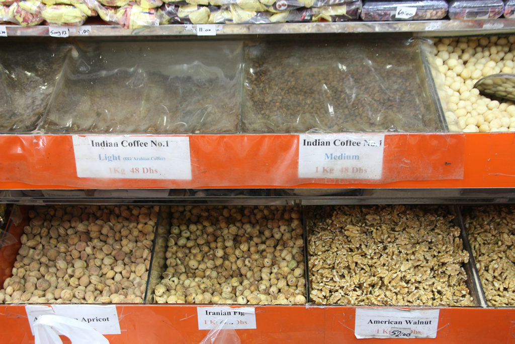 中東地區以乾果和堅果為名,而杜拜舊城區購買的價格相比起機場要便宜一半以上,在 Al Rigga 區的 Choc & Nuts 就是很多空姐推介的小店,這裡有大量來自伊朗、中亞、中東地區的乾果和堅果,價錢都是明碼實價,不用像在市集般要議價,又不知品質如何,最好還是可以在冷氣環境慢慢選購。