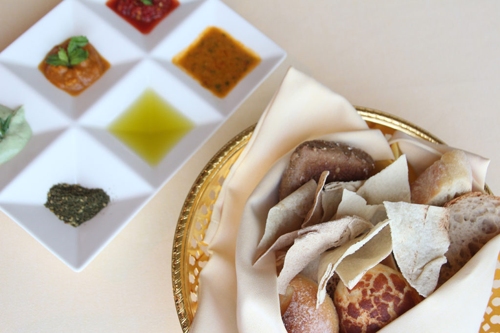 這次的 Buffet 價格折後只需 AED 260(HKD$572),相比香港的五星級酒店 Set Lunch 還便宜,服務水平卻是超水準,入座後,職員先介紹各種特色飲品,極力推介 Gold Emotion 這款含 24K 金的有氣蘋果汁和 Golden Arabic 果汁,我們就選擇了後者和果汁,隨即還端上了各種中東特色的麵包和醬汁,逐款解說。