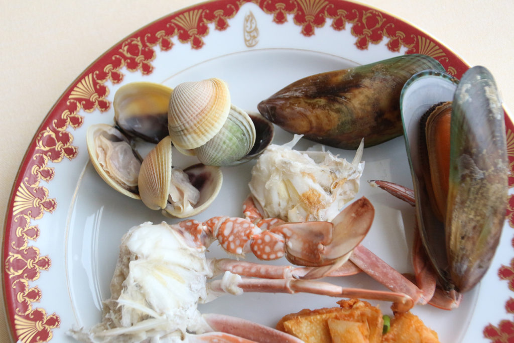 Al Iwan 的自助餐選擇食物,主要分為海鮮頭盤、中東頭盤、主菜和中東特色甜品,對於外行人來說,除了紐西蘭青口和蟹腳外,基本上所有菜式都是毫無頭緒的,職員就介紹了幾款相對特色的主菜,包括來自摩洛哥的 Fish Sharmola,黎巴嫩的 Shrimp Majbous。