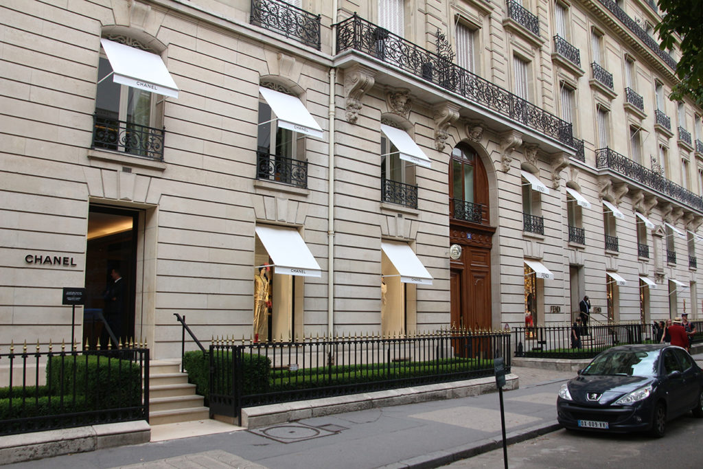 吃過甜品,就是購物時間,蒙田大道是巴黎最著名的購物街,基本上所有的名店都集中在這條街上,包括法國本地多間名店如 LV、YSL、Celine、CHANEL 等都開設了最小一家的門店在此。這裏的人流也相當香榭麗舍大道的旗艦店較小,服務也好一點。
