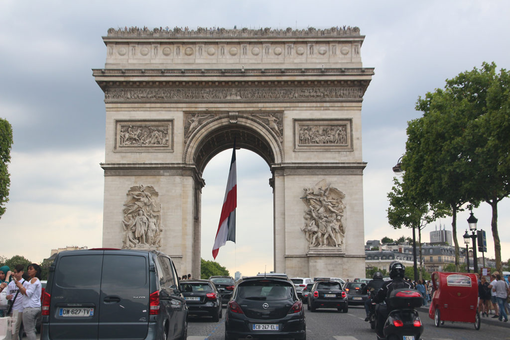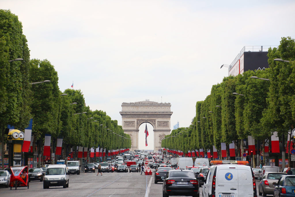 不知不覺逛了差不多兩小時,終於就到香榭麗舍大道,指定動作當然要走到馬路中心拍一個凱旋門的全景,碰上法國國慶前的一天,整條大道兩旁都掛滿了法國國旗,看起來就更有氣氛。