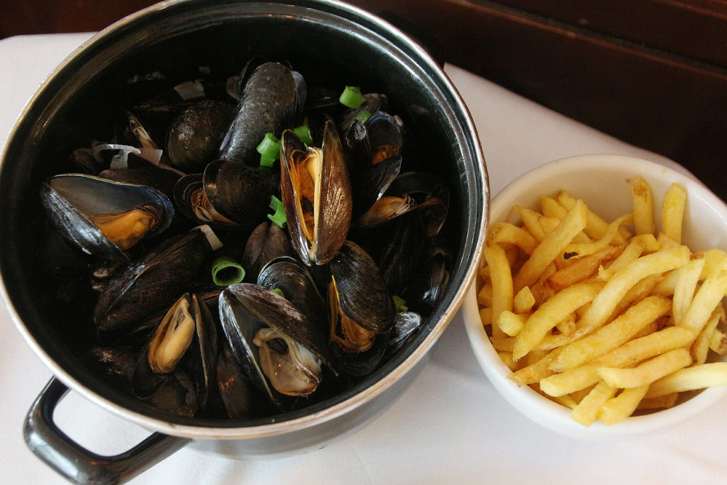 相比起,香榭麗舍大道的商店比起蒙田大道較為親民,像是法國國民品牌 Naf Naf、Longchamp、Nike、H&M 等等都有大型商店開設,更意想不到的竟是街道兩旁的餐廳價錢更是相當親民,走在路上看到一家阿爾薩斯菜館的宣傳牌,只需€13就可以享用一大盤青口和薯條,忍不住口就到店內來個下午茶。