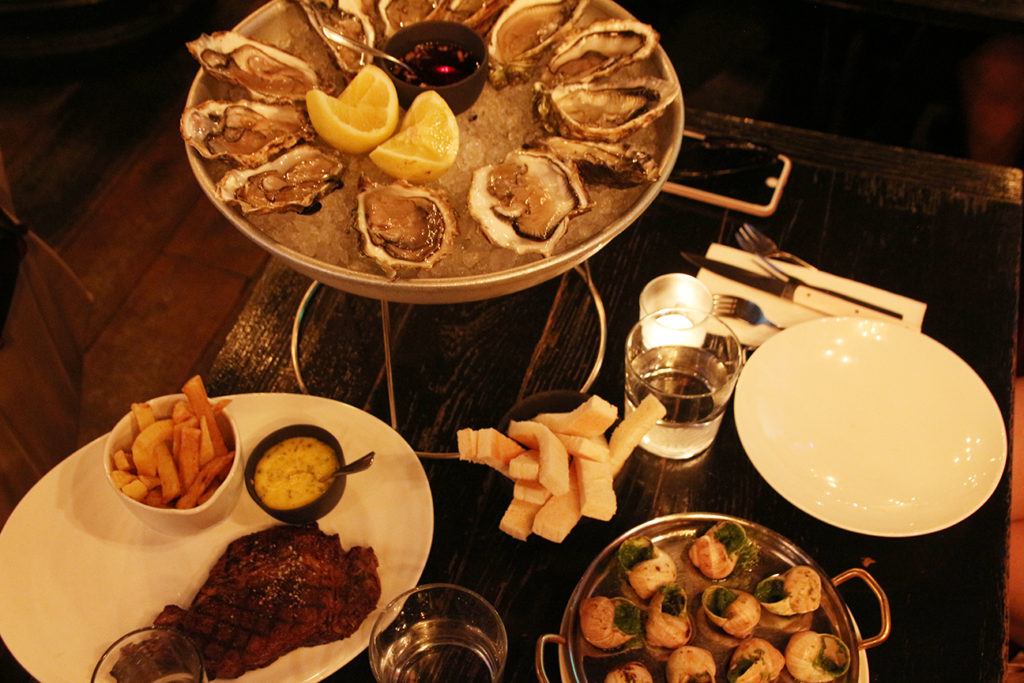 除了蝸牛,我們也多點了一打本地生蠔和 Steak Bearnaise,感覺實在有點吃不下去,生蠔感覺不怎新鮮,比起 Borough Market 差一大截,牛扒更是相當乾身,完全令人失望。