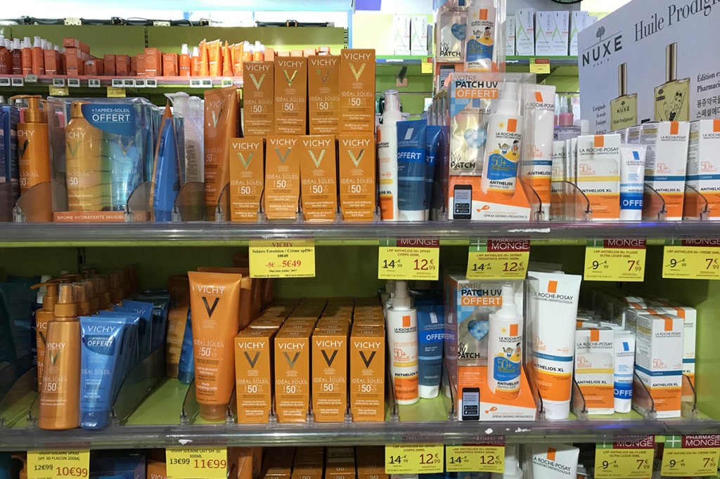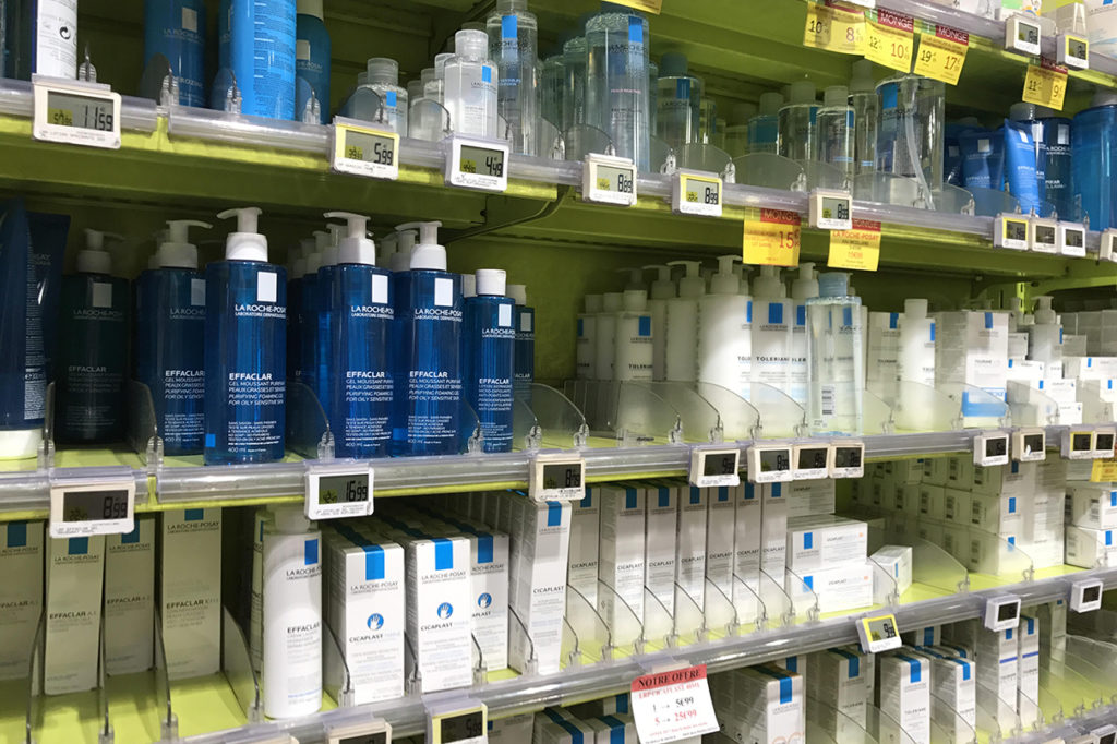 停好車在藥房對面的停車錶位,就緊握一小時的購物時間,藥房的藥妝品種就是多達上千種,大部份人都是搜羅法國本地品牌的藥妝和產品,如兩大本地溫泉水品牌 La Roche Posay、Vichy 的招牌產品,當中溫泉水噴霧兩支裝就只需 €9.9(HKD$84),相比香港一支也要 $140 便宜 2/3,而招牌的 Cicaplast B5 萬用膏更亦只需 €9.79(HKD$83),也比香港 $230 便宜得交關。而很多尚未登陸香港的產品,如 UV Patch 等等,也可以在蒙日藥房找到,更有大兩特惠包裝,退稅後就更加是極為超值。