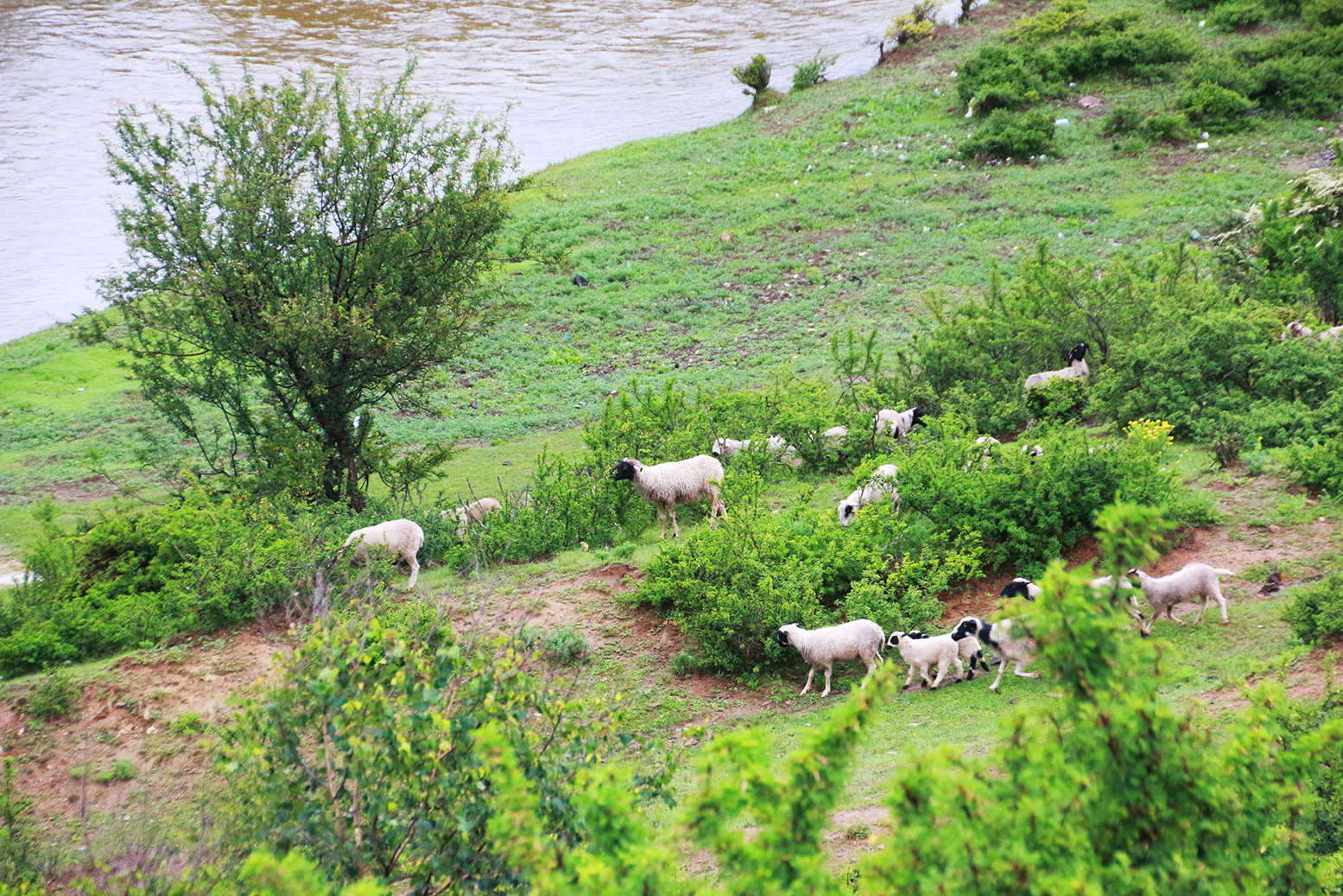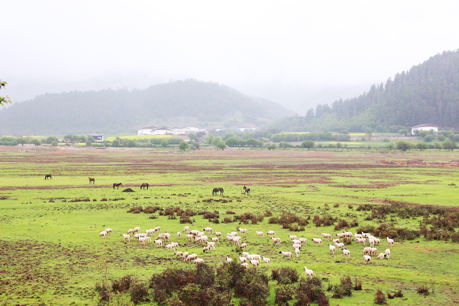 早上一踏出房門,門外就已經集結了一大群犛牛和羊群,採用動物集體擁有制的藏民,每早都讓動物自由放牧,牠們在酒店的對面河一直跑到山坡上的酒店上,完全沒有藏民隨行,只要到吃飯時後,自然會回到圈養區,如此的畜牧作業方式,在講求私利為大前提的中國,實在讓我們感到詫異,也讓準備去探訪的我們,心目中對藏人留下了一個很不一樣的正面感覺。