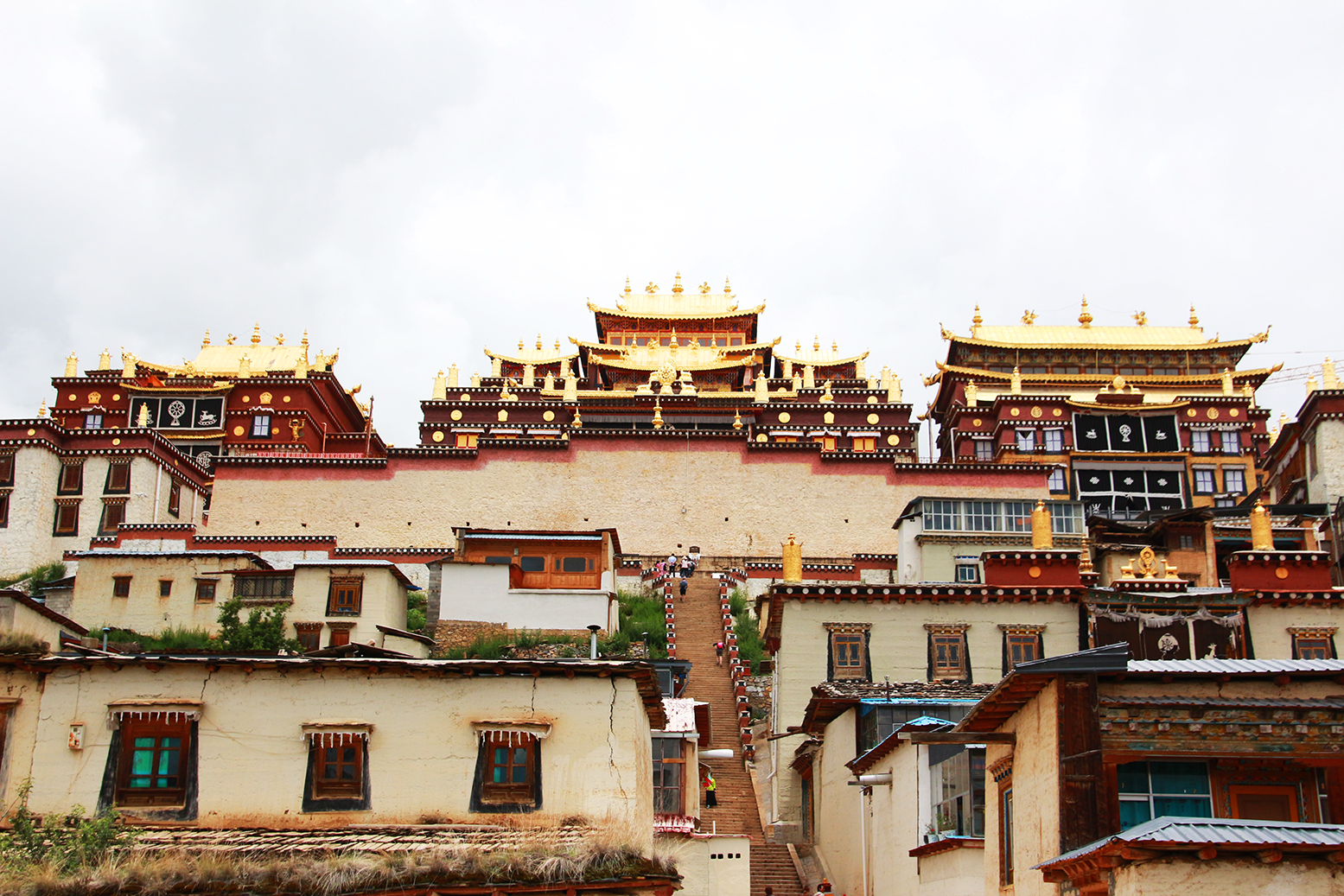 來到香格里拉,除了探訪藏民居外,最重要當然不能錯過素有小布達拉宮的松贊林寺,從遠處看整個寺廟群就好像一個藏式的小山城,兩座主殿扎倉和吉康金色的屋簷特別搶眼,建於清代康熙年間,但在文化大革命卻遭全毀,現時所見的其實是 80 年代重修後的模樣。