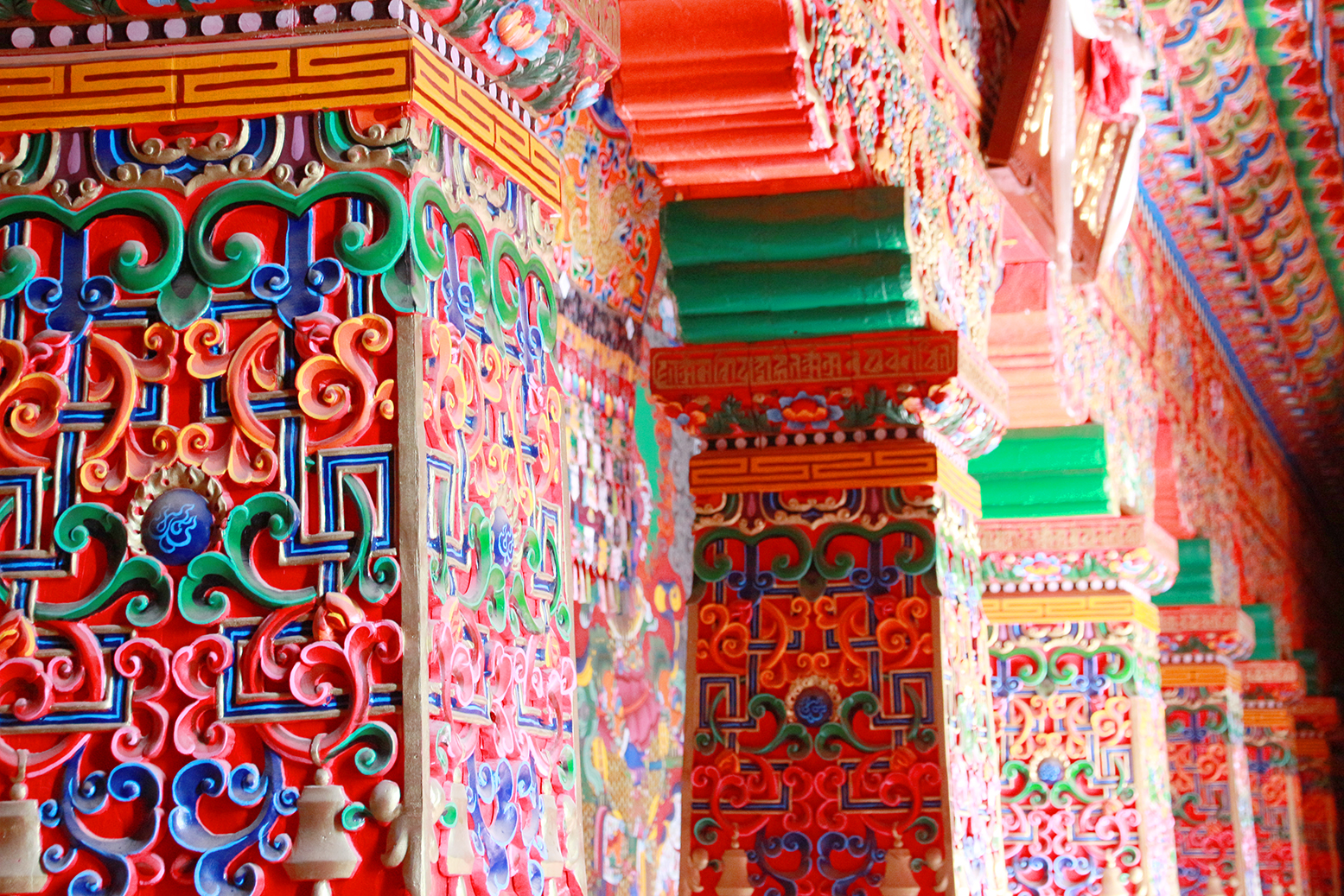 在松贊林寺修練的僧人超過 700 人,大部份地方都對外開放,只要誦經的大殿卻不對外開放,特別是樓高 6 層的兩座主殿,基本上都可以四處參觀,牆上的彩繪、屋簷上的雕刻和 8 米高的釋加像等都很值得細看,如果體力許可,當然可以到頂樓一看整個香格里拉城和拉姆央措湖的景色。